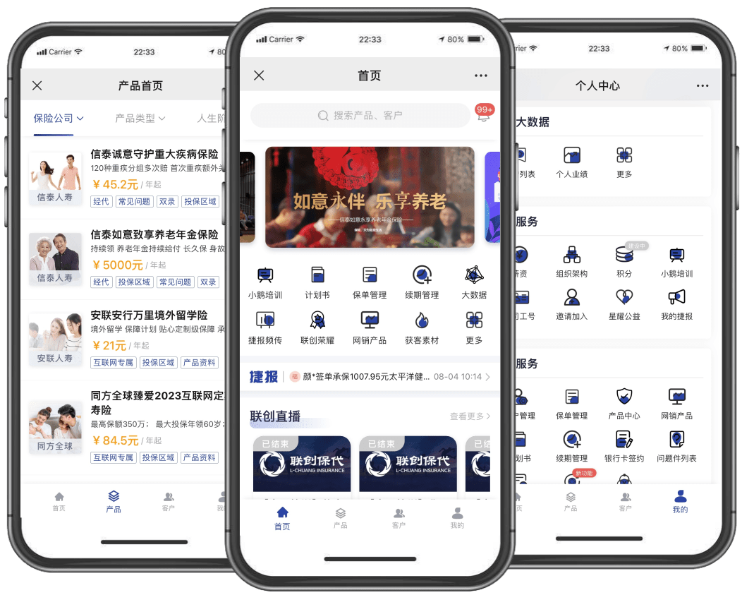 全新自研“聯創秒保”移動展業系統,一站式展業支持工具,助力快速出單